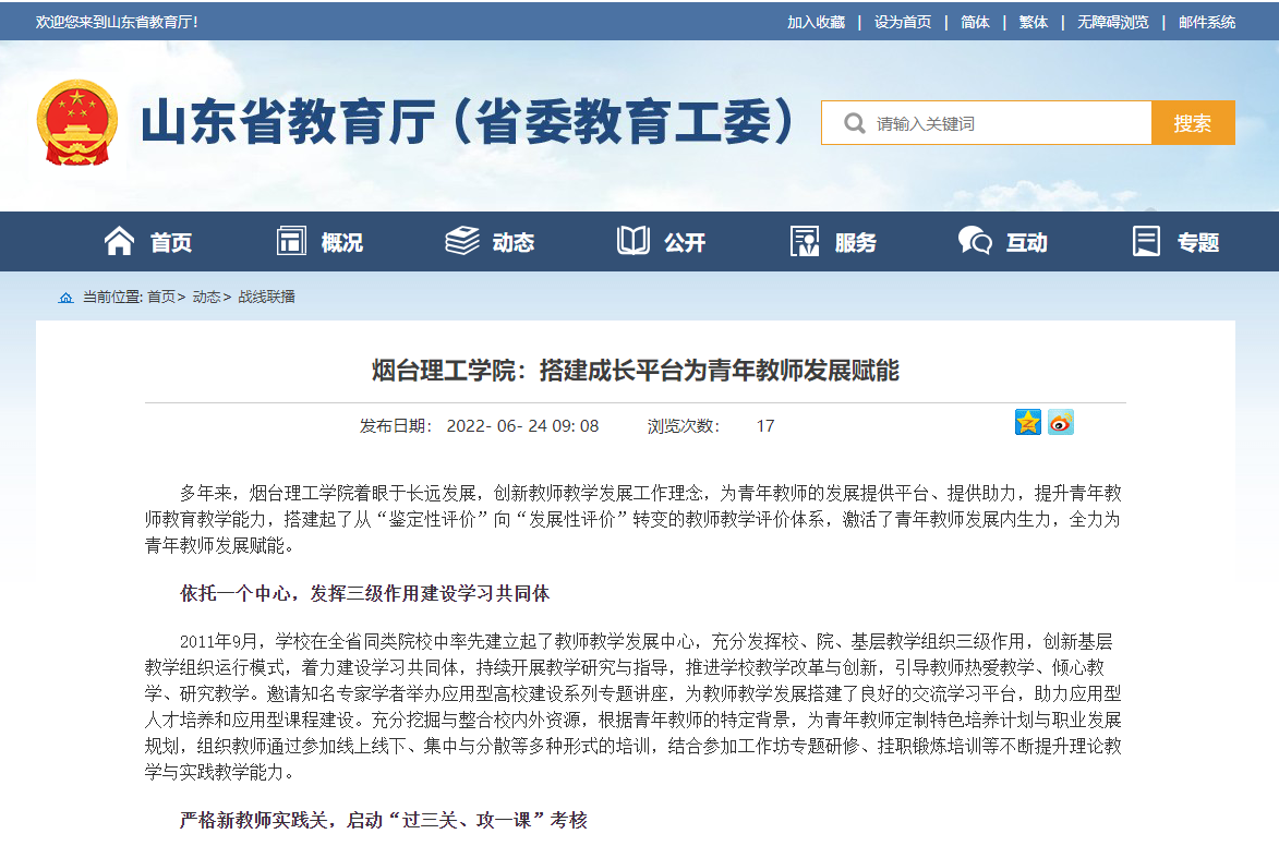 省教育厅宣传我校搭建成长平台为青年教师发展赋能