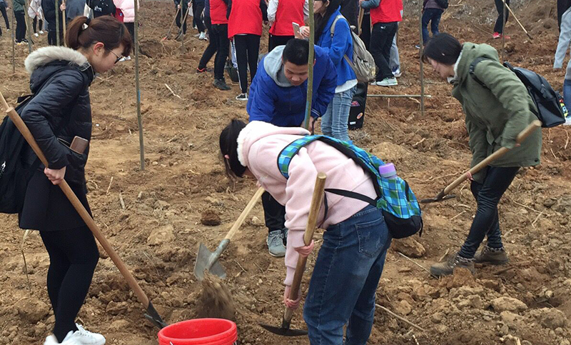 3月12日上午,我院管理系、文法系、外语系积极参与烟台大众网·万光山海城“留住青山绿水,共建生态文明”公益植树环保行活动,前往曹家庄绿化示范点开展植树节主题教育活动。在大家的通力合作下,植树工作很快完成。种完树后,同学们将许愿卡挂在了自己亲手栽种的树苗上,寄托“春”愿。活动当天,共有2000余名成员参加,经过一上午的辛勤劳动,共种下5000余棵树苗。此次活动掀起了烟台市全民植树的热潮。