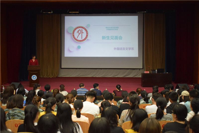 9月2日晚,外语系全体新生与部分教师相聚于一教多功能厅,参加新生见面会。外语系主任肖德法教授、党总支书记张廷国教授、副主任于巧丽老师、主任助理张丽老师、各位教研室主任、新生班主任出席此次见面会。