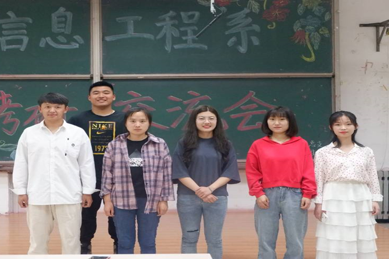 为进一步提高学生的考研热情,明确考研目标,了解前沿考研形势,增强考研斗志,5月23日下午五点半,信息工程系在二教115教室举办2020届学生考研交流会。交流会邀请房浩、王凯、董亚辉、王怀营、亓文静、王凯丽、王然七名2019届考研优秀学生开展考研经验交流。信息工程系2016级约100名学生参与经验交流。