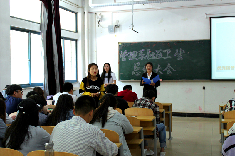 为促进学生养成良好的生活习惯,培养大学生团体协作精神,营造健康文明、积极向上的宿舍文化氛围,推进校园文明建设。5月9日,管理系于一教118教室举行社区卫生总结大会,管理系学生会副主席徐成涛、孟文静出席会议,管理系各班级干部参加。