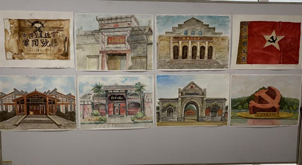 这些革命文物、党史上的重要会议旧址、革命烈士旧居、伟人旧居等形象,不仅带给了同学们强烈的视觉震撼和心灵震撼,也让同学们在创造作品中激发出自己的爱国情感及创作潜力,使作品充满了理想和信仰的力量。党史学习融入绘画课程,激发了学生积极创作的潜力,充分发挥了学生的专业水平。传承红色基因,赓续红色血脉,让我们携手并进,从党的百年奋斗史中坚定信仰,为实现中华民族伟大复兴贡献我们的智慧和力量。
