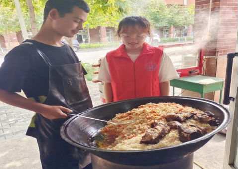 在实践过程中,实践队成员积极向当地居民学习新疆美食的制作,体会民族饮食制作过程的不易,深刻感受民族文化的异同。在轻松愉悦的氛围中,实践队成员同当地居民展开亲切交谈,了解到新疆地域相关民族特色文化旅游领域的开发与拓展,正在国家和地方政府的大力扶持下飞速发展,这让实践队员进一步铸牢中华民族共同体意识,增进社会民众对中华民族的认同感和归属感。