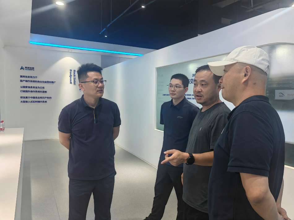 揭牌仪式上,企业总经理丁晓华、副总经理施浩波等对学院一行的到来表示了热烈欢迎,详细介绍了公司在国产化嵌入式操作系统领域的核心技术与市场布局。并热情介绍了前期与我院相关科研技术骨干教师,参与该司具体科研课题合作、配合开展课题攻关等工作的进展情况,对后续双方在纵向课题联合申报、横向课题深度合作、新一代产教融合合作体共建等方面,表达了积极意愿。